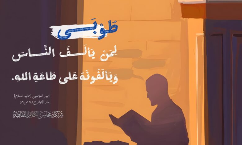 عَنْ أَمِيرِ اَلْمُؤْمِنِينَ عَلَيْهِ السَّلاَمُ :طُوْبَى لِمَنْ يَألَفُ النَّاسَ وَيَألَفُونَهُ عَلى طَاعَةِ اللهِ . بحار الأنوار ج٧٨ ص٥٦.__ مدرسة أهل…