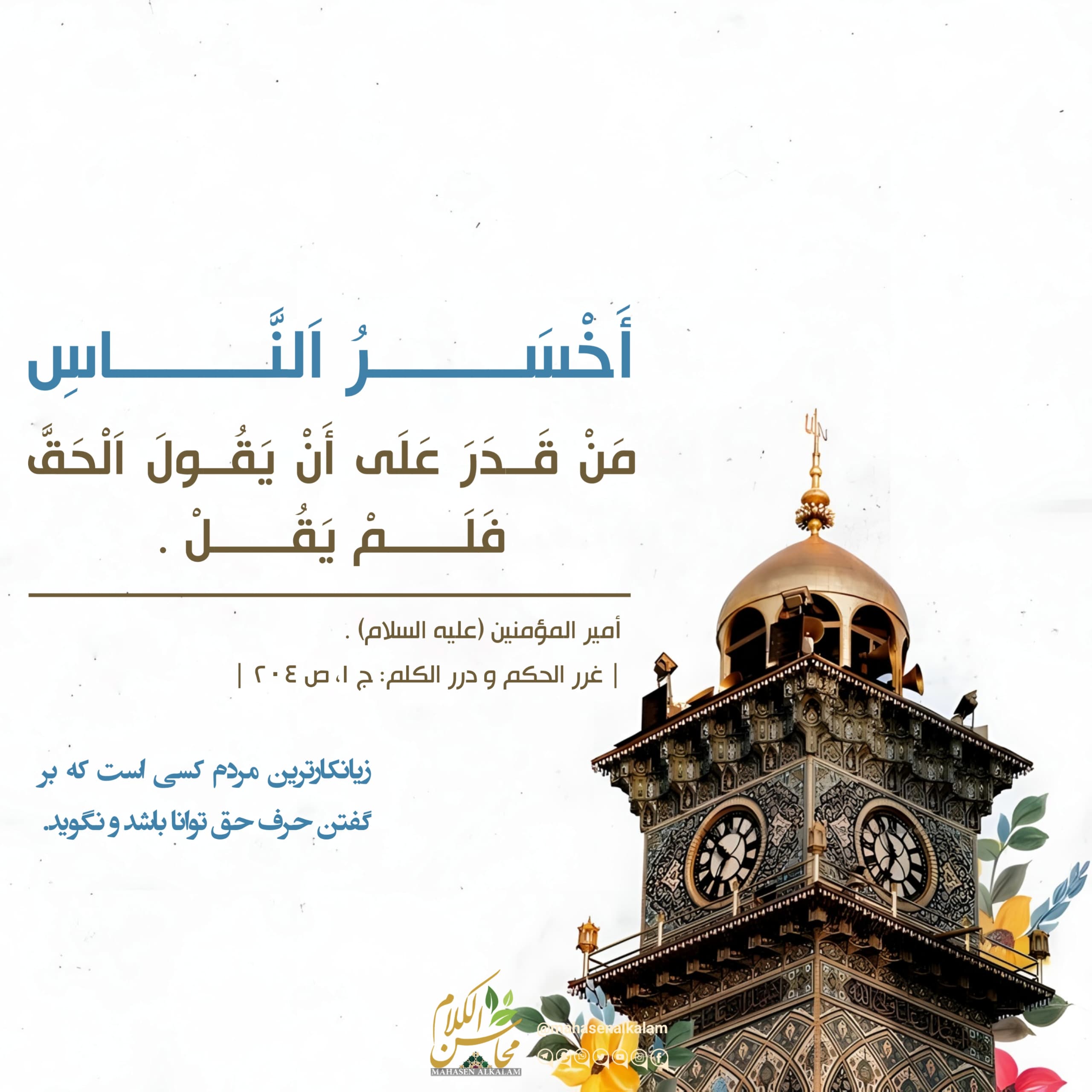 أَخْسَرُ اَلنَّاسِ مَنْ قَدَرَ عَلَی أَنْ يَقُولَ اَلْحَقَّ فَلَمْ يَقُلْ .