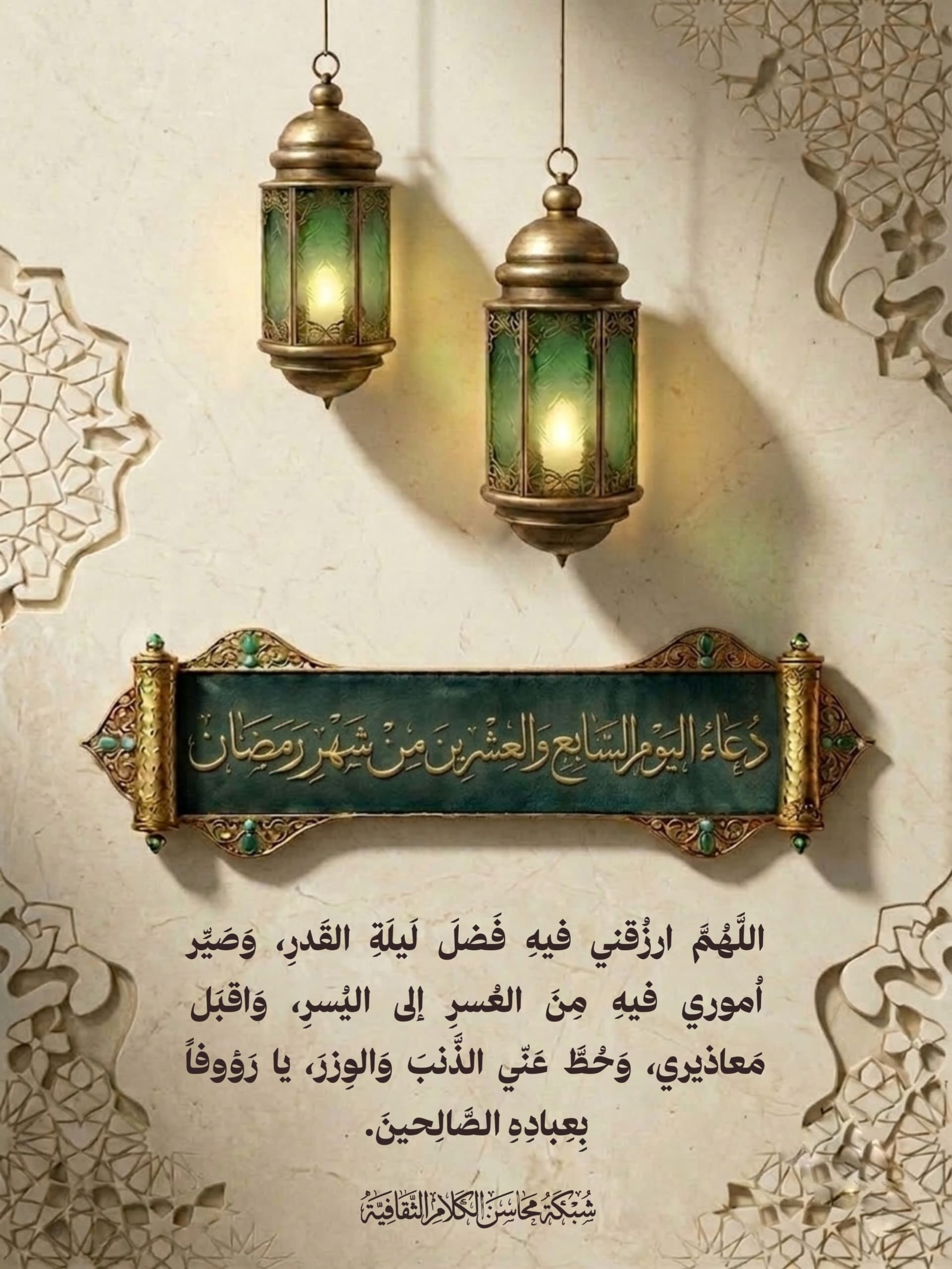 اللَّهُمَّ ارزُقني فيهِ فَضلَ لَيلَةِ القَدرِ، وَصَيِّر اُموري فيهِ مِنَ العُسرِ إلى اليُسرِ، وَاقبَل مَعاذيري، وَحُطَّ عَنّي الذَّنبَ وَالوِزرَ، يا رَؤوفاً بِعِبادِهِ الصَّالِحينَ.🤲🏻